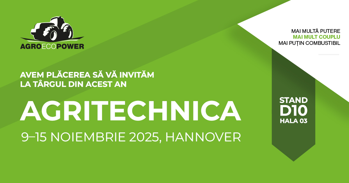 Cel mai mare târg mondial de tehnologie agricolă, AGRITECHNICA 2025, se apropie cu pași repezi, iar AgroEcoPower va fi desigur prezent!